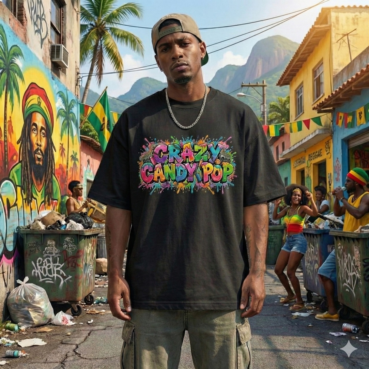 「CRAZY CANDY POP」の文字が、まるでキャンディが弾け飛んだかのような、鮮烈なグラフィティアートで描かれた一枚。滴り落ちるペイントのドリップ効果と、レトロなラジカセのモチーフが、80s〜90sの熱いストリートカルチャーを彷彿とさせます。