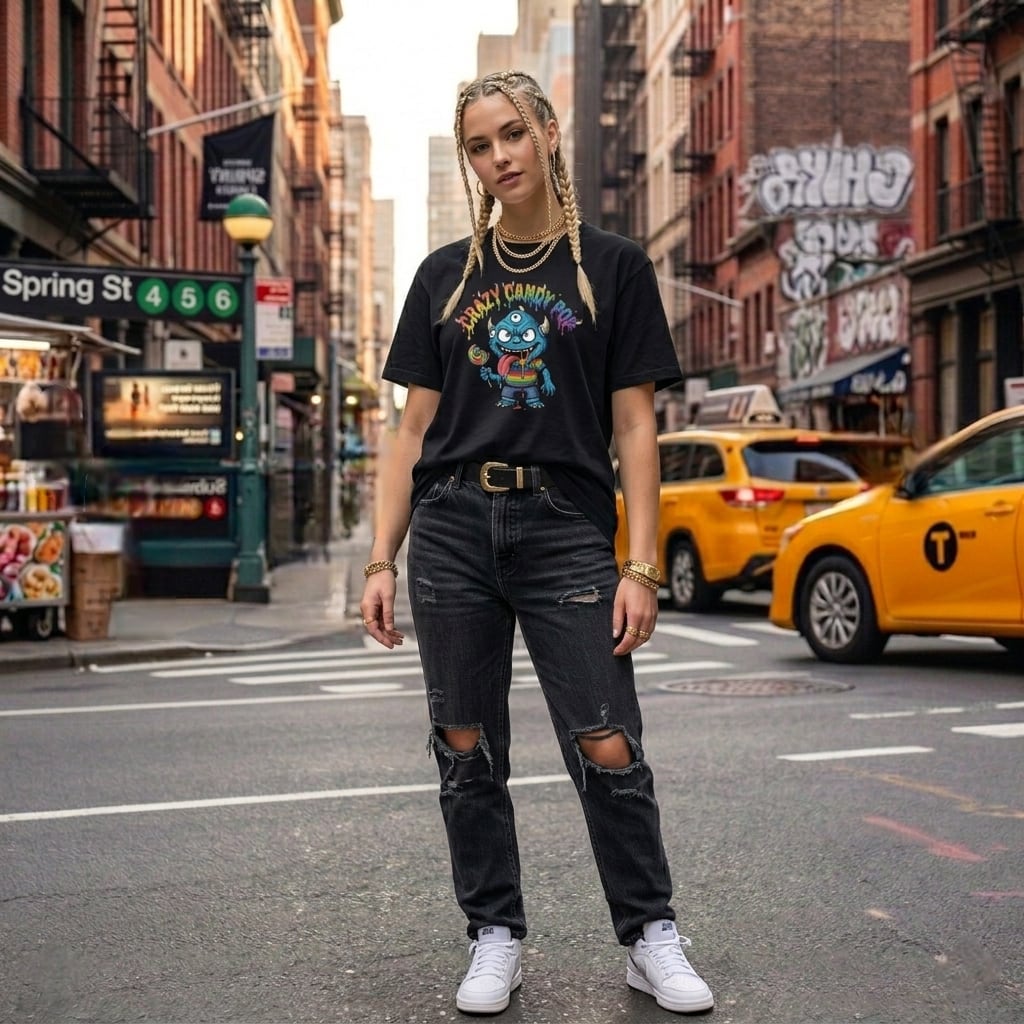 このTシャツの持つ「可愛らしさ」と「毒っ気(クレイジーさ)」のバランスを体感して下さい。